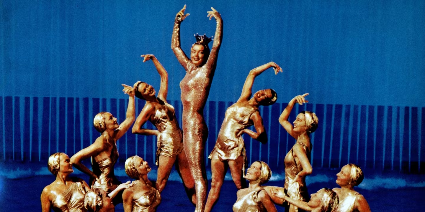 Grand espoir de la natation américaine, elle voit ses espoirs olympiques brisés par la Seconde Guerre Mondiale et s’offre une nouvelle vie à Hollywood où elle est engagée par MGM pour des numéros de ballets aquatiques et des comédies musicales. Du grand bassin à la plongée au milieu des requins, voilà la championne propulsée dans un monde crasseux et décadent où les paillettes ne sont que la poudre aux yeux. L’insistance des producteurs, les fantasmes des réalisateurs, la folie perverse des acteurs symbolisée par une scène glaçante où Johnny « Tarzan » Weissmuller lui court après le sexe à la main en faisant des cris de singe : rien n’aura été épargné à Esther Williams. Après une trentaine de film dont La Première Sirène (1952) et La Chérie de Jupiter (1955), elle fait ses adieux en cinéma dès 1961 pour monter… sa marque de maillot de bain.