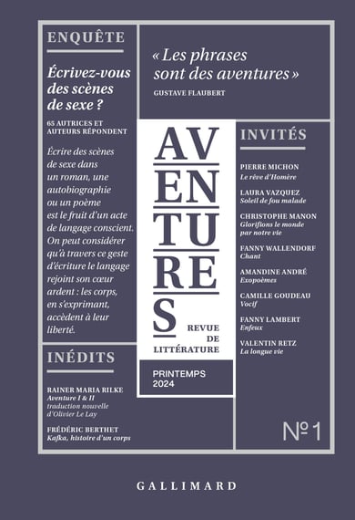 En lançant il y a tout juste un an, chez Gallimard, la revue Aventures, avec un premier numéro brûlant, consacré à l’écriture du sexe et des textes de Joffrine Donnadieu, Victor Dumiot ou Esther Teillard, Yannick Haenel a poursuivi l’entreprise entamée par son maître et ami Philippe Sollers dans L’Infini, celle d’une insurrection littéraire et poétique contre le corsetage de la langue menée par les plumes les plus talentueuses et les plus impertinentes de la nouvelle génération.
